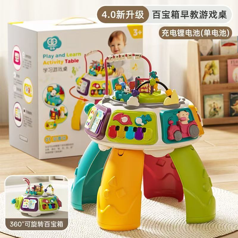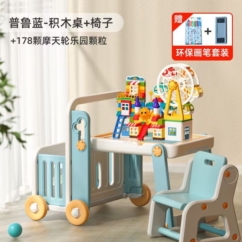 曼龙多功能积木桌+椅子+178颗摩天轮乐园积木