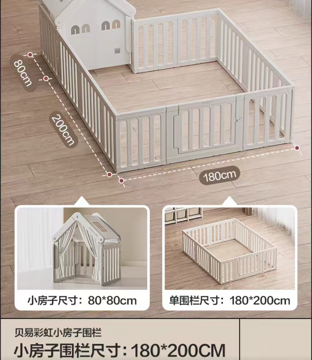 贝易 彩虹围栏+帐篷屋 1.8×2米